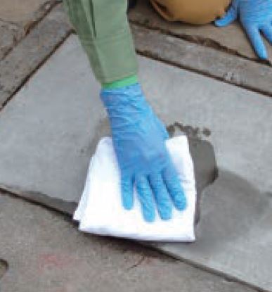 ウエス(布)で拭いた後に水で洗い流す