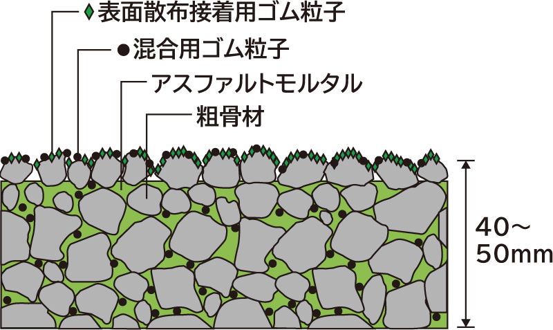 舗装表面はポーラスアスファルト舗装と同等のきめ深さ、表面より下部は砕石マスチック舗装と同等の緻密性を有しています。