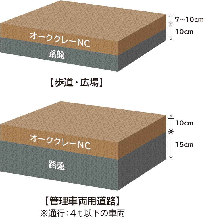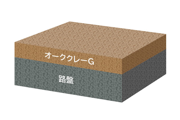 オーククレーNCは、砂質土と骨材にマグネシウム系固化材を混合して固化させた土系舗装です。土の色や風合いを有するため、適用箇所の景観に配慮した道路整備が可能となります。