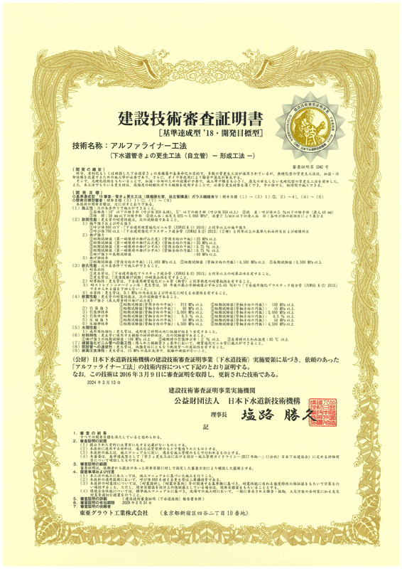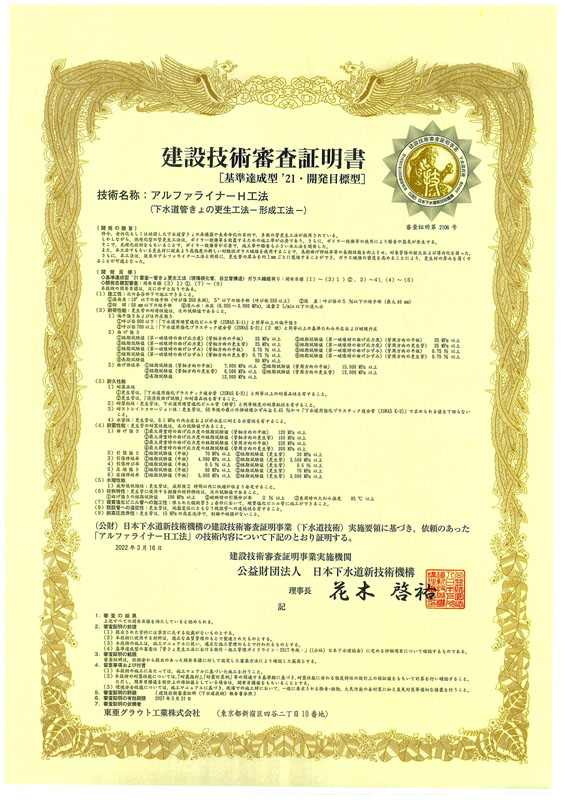 アルファライナーH工法自立管タイプ:φ150~900㎜