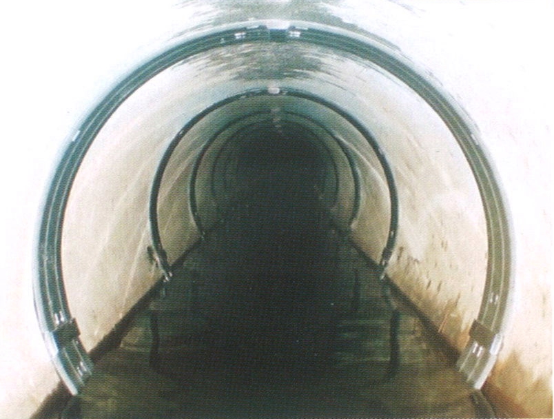 ステンレススリーブとゴムスリーブからなる円筒形の修繕部材を拡径・設置することにより、確実な水密性効果が得られます。